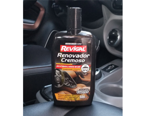 Es un producto de alto rendimiento, formulado para aplicar sobre superficies de cueros, vinilo, madera y plásticos del interior y también exterior del auto.